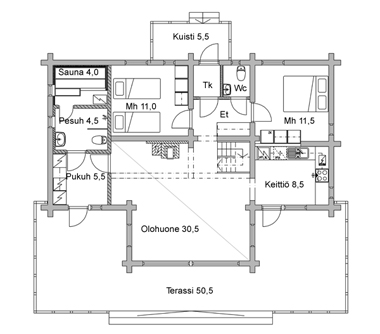 - huvilassa sähkösauna + pesuh + ph + kkh