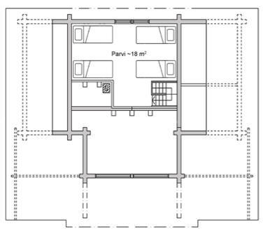 Alakerrassa on kaksi makuuhuonetta, yläkerran parvella on