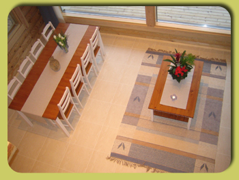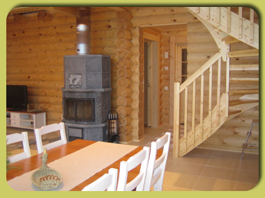 Huvilan kalusteet ovat suomalaista puuta ja ne on käsitelty